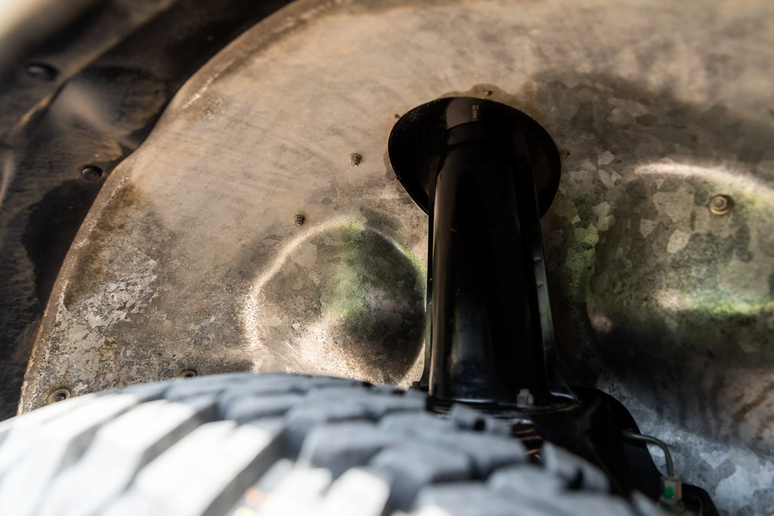 The vehicle has been fitted with Wolf heavy duty steel wheels, painted to match the body in Eastnor Green, and a new set of Goodyear Wrangler MT/R tyres have been fitted. Not only do these tyres look and perform well in all conditions, but Land Rover themselves fitted them from the factory on the later Defenders. The details are very important to us, so correct 60mm extended wheel studs have been fitted to ensure there is sufficient thread for the wheel nuts, which are now stainless steel, to hold on to.